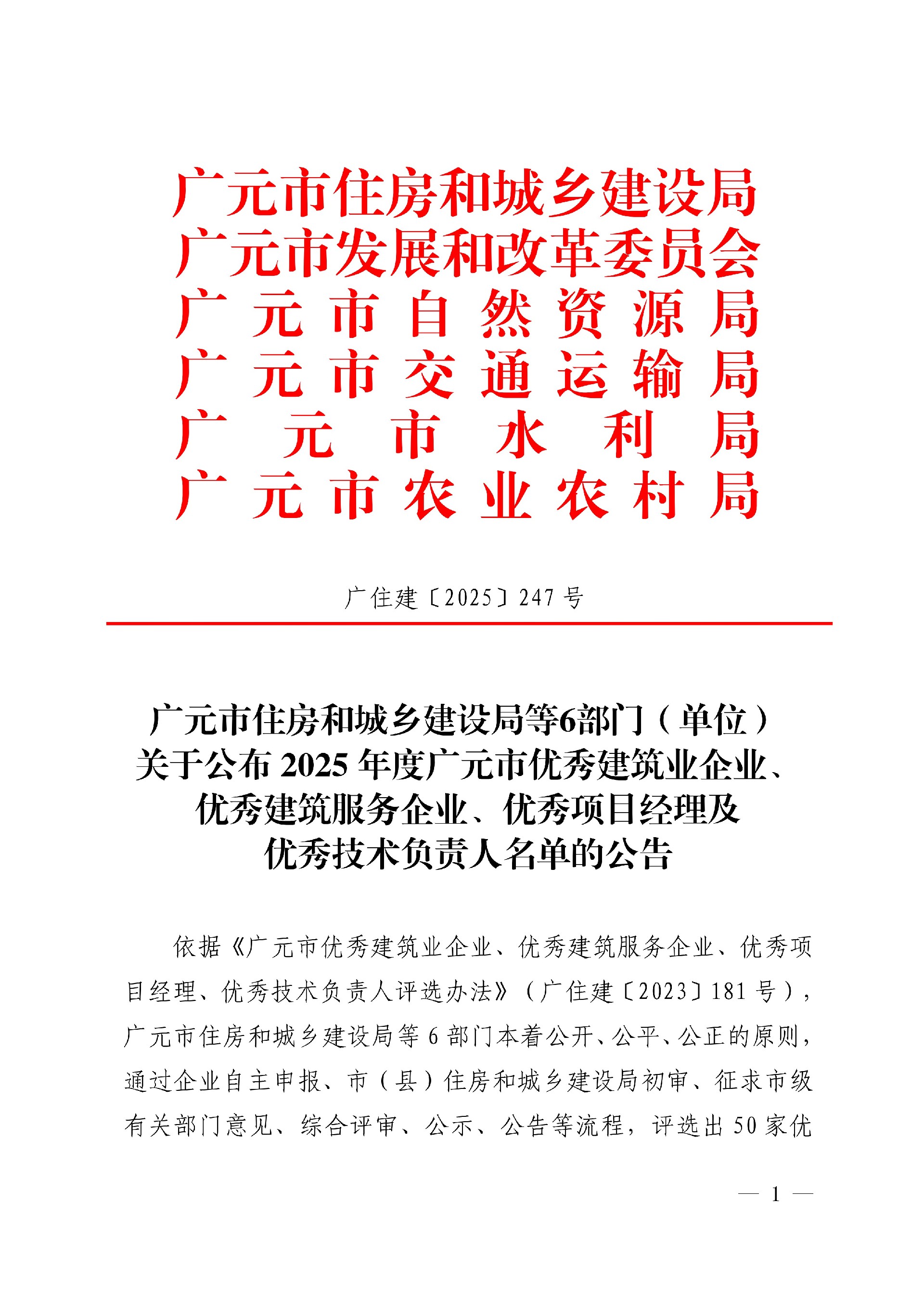 近日,廣元市住房和城鄉(xiāng)建設(shè)局等6部門(單位)公布了2025年度廣元市優(yōu)秀建筑業(yè)企業(yè)、優(yōu)秀建筑服務(wù)企業(yè)、優(yōu)秀項(xiàng)目經(jīng)理及優(yōu)秀技術(shù)負(fù)責(zé)人名單,路橋集團(tuán)獲評“2025年度廣元市優(yōu)秀建筑業(yè)企業(yè)”,副總經(jīng)理母健全獲評“2025年度廣元市優(yōu)秀技術(shù)負(fù)責(zé)人”。