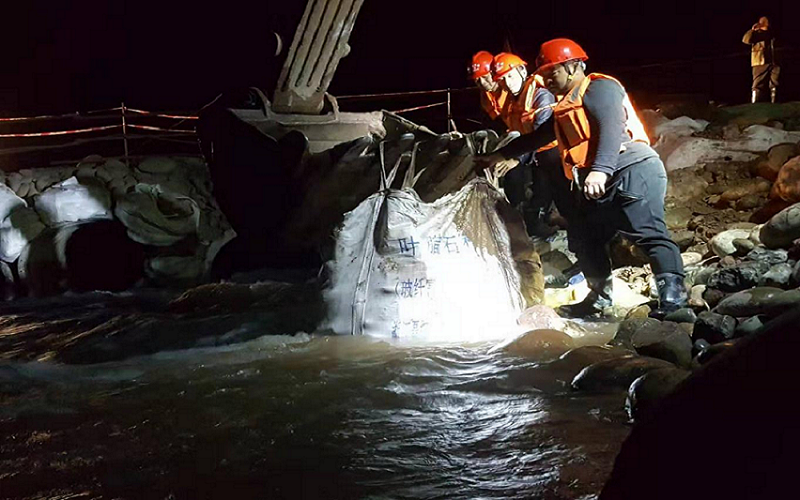 2019年10月25日晚上8點,旺蒼縣東河上游持續(xù)降雨,導(dǎo)致河道水位急速上漲,洪水眼看就要沖垮圍堰淹沒現(xiàn)場施工設(shè)備及物資材料了,項目部值守人員及時發(fā)現(xiàn)了險情,立即上報項目負責(zé)人。應(yīng)對突如其來的災(zāi)情,項目負責(zé)人杜光安迅速召集項目部所有人員冒雨集合,經(jīng)過簡短的分析、研究和商定,一場抗洪搶險攻堅戰(zhàn)迅速打響。機駕人員劉文勇、周勇率先駕駛著機械疏通河道,憑借著熟練的操作技能和對環(huán)境的正確判斷迅速地疏通河道,增加過水面積;其他施工人員冒著大雨,借助車輛微弱的燈光摸黑轉(zhuǎn)移現(xiàn)場物資材料,泥巴了裹滿褲腿,雨水濕透了衣背,但他們精神抖擻,干勁沖天。在險情面前,黨員劉強、預(yù)備黨員劉文勇充分發(fā)揮了黨員干部的先鋒模范作用,沒有畏懼、沒有退縮,義無反顧地沖在搶險第一線。當(dāng)險情控制住后,他們不顧疲勞辛苦,主動要求留下來徹夜觀察水位,密切監(jiān)視雨情和汛情變化。次日凌晨5:30分河道水位再次上漲,因為他們徹夜堅守及時發(fā)現(xiàn),險情得以迅速排除,最大限度地減少了公司的經(jīng)濟損失。